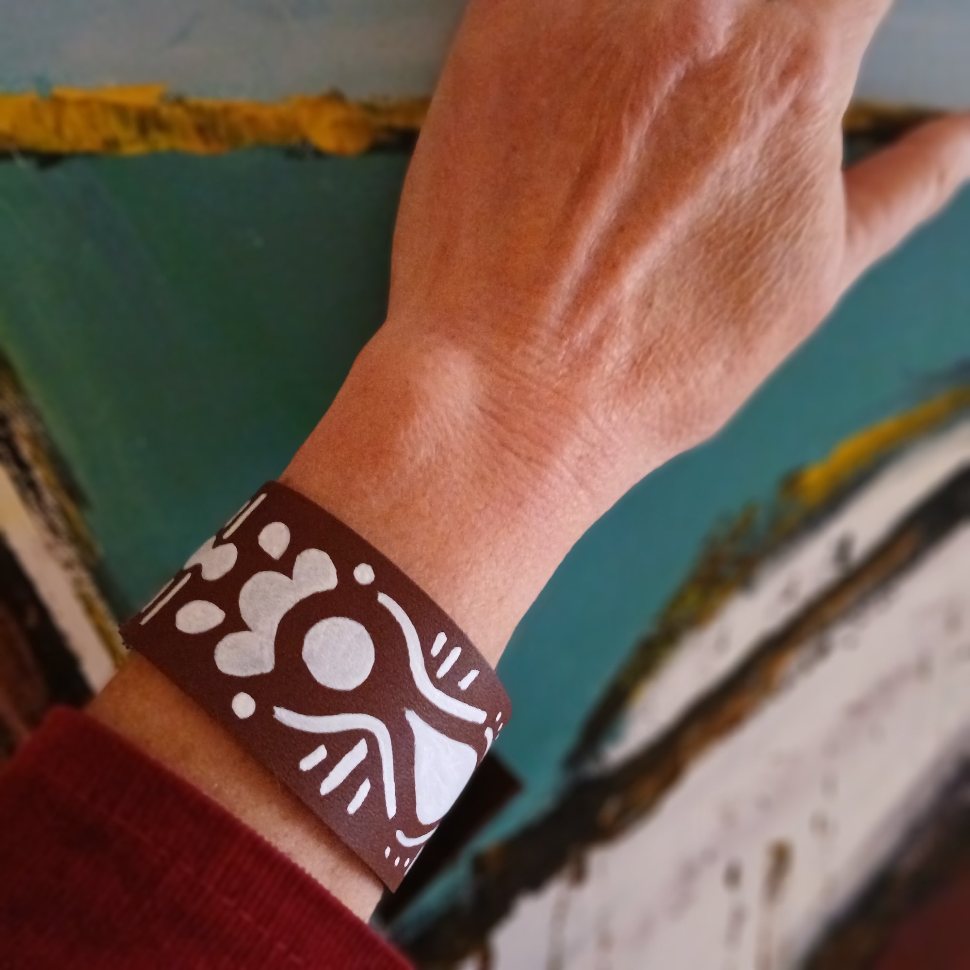 Hand painted leather cuff made in collaboration with Offkuttt.