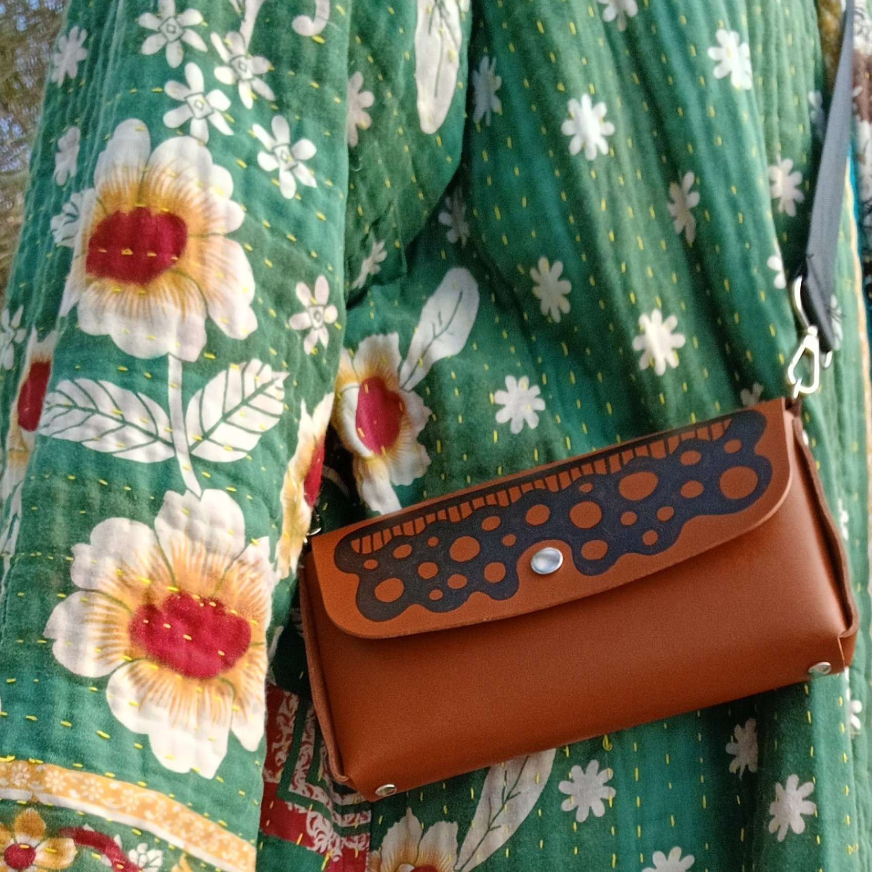 Georgous hand painted leather bag, a totally bespoke, one off piece. This bag has been made from leather offcuts, using old school tools.....no machinery!