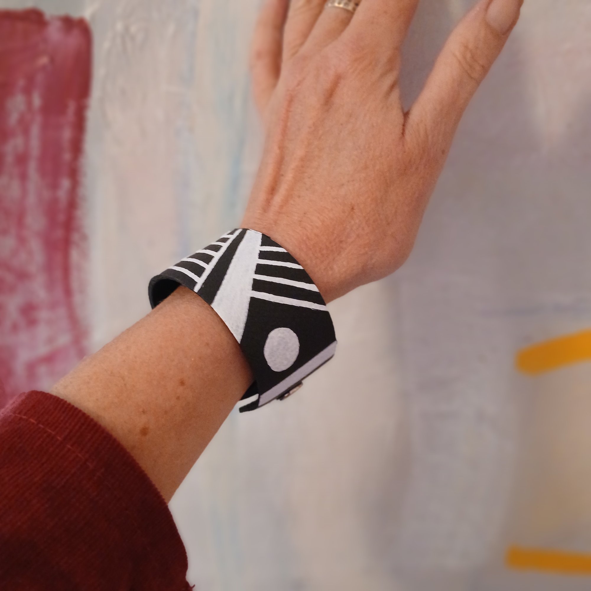 Hand painted leather cuff made in collaboration with Offkuttt.