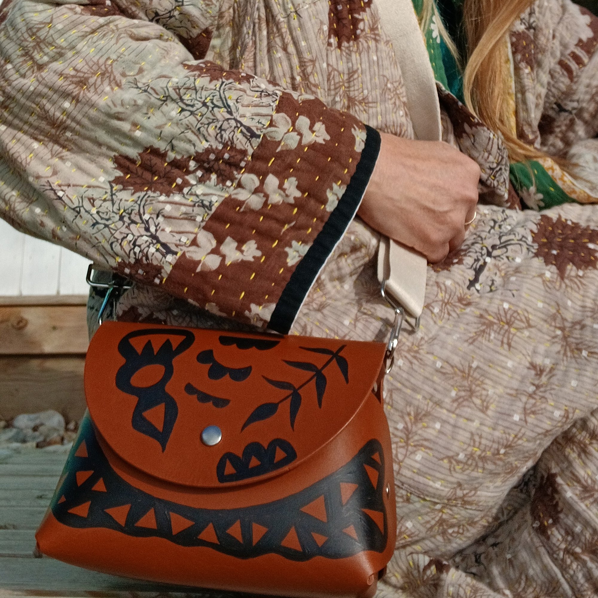 Georgous hand painted leather bag, a totally bespoke, one off piece. This bag has been made from leather offcuts, using old school tools.....no machinery!